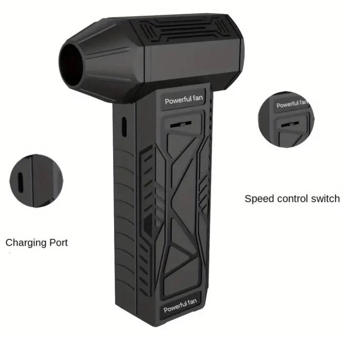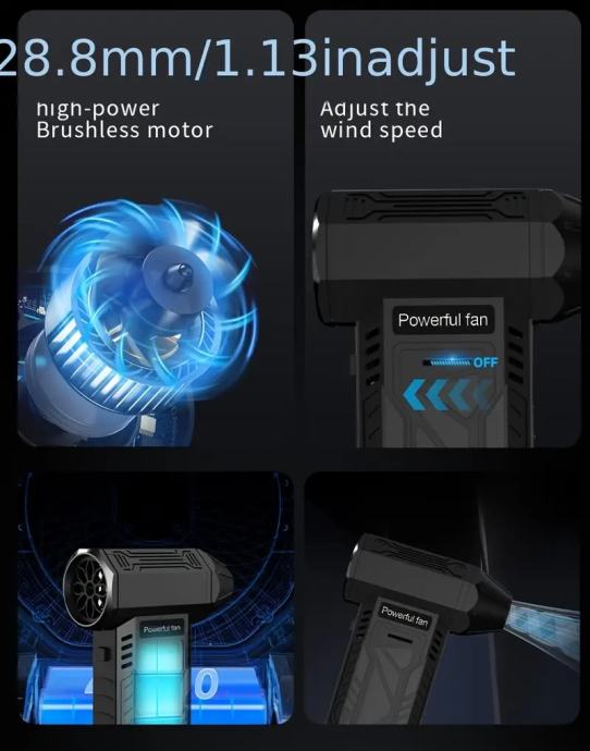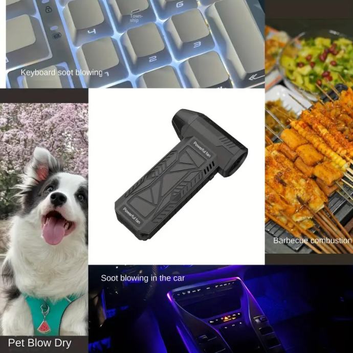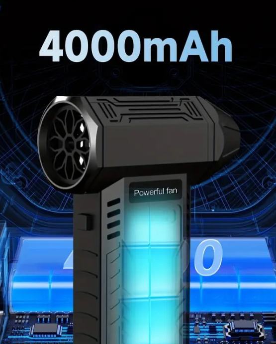 Prijenosni ventilator idealan za kampiranje, roštiljanje, kućne radove, čišćenje i ispuhivanje. Uređaj koristi bezčetkasti motor, puni se putem Type-C sučelja i pruža snažno hlađenje u kompaktnom formatu.