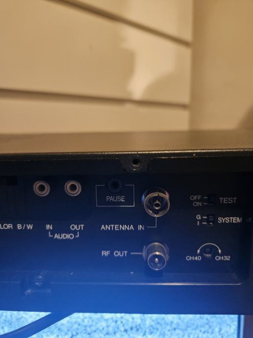 ulazi:- antenna in rf out , channel 32-40 , test on off , pause , system g i ,audio in&out , colour b/w , video in&out ,