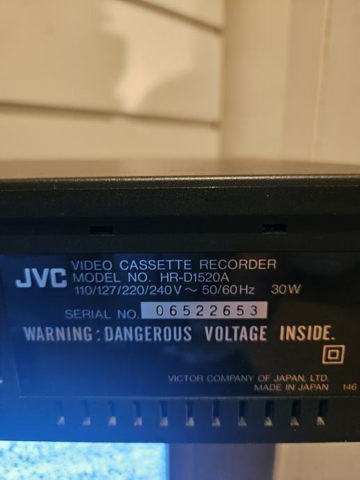 specifikacije - The JVC HR-D1520A is a Super VHS (S-VHS) player/recorder designed for the NTSC system, featuring Hi-Fi stereo audio, S-Video connectivity, and standard VHS playback/recording, offering features like FM recording, digital tape time base correction, and a jog shuttle for easy editing, providing high-quality analog video and audio with 90dB dynamic range for its time.