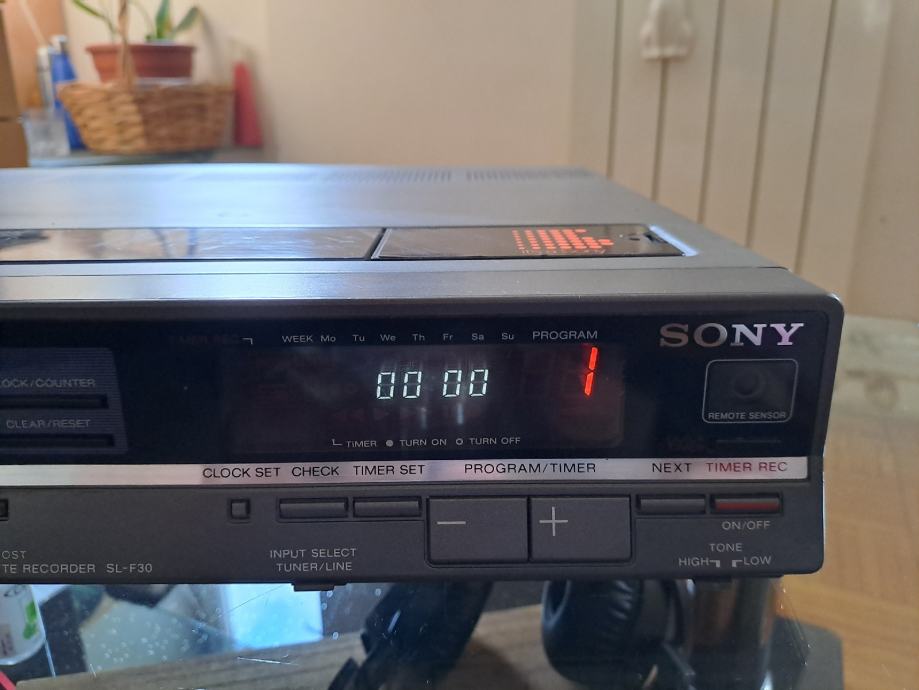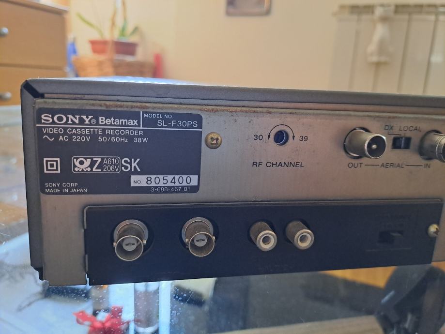 B/W: Better than 43dBAudio frequency response50Hz to 10,000HzAudio S/NBetter than 40dBInputs and outputsVideo inputVIDEO IN: BNC connector1.0 V (p-p)75 ohms, unbalanced, sync negativeVideo outputVIDEO OUT: BNC connector1.0 V (p-p)75Ohms, unbalanced, sync negativeAudio inputsAUDIO IN: phono jack47 kilohms, -10 dBs(0 d Bs = 0.775 V rms) Audio outputsAUDIO OUT: Phono jackLoad impedance less than 10 kilohms-10 dBs with 47 kilohms load, unbalancedTape transportTape speed18.73 mm/sec. Maximum recording time2 hours 10 min. (with Sony L-500 cassette)3 hours 15 min. (with L-750)Fast forward/rewind timeWithin 5 min. (with L-500)TimerClockCrystal lockTime indication24-hour cycleTimer setting Only for recording1 events/3 weeks, adjustable for any day or for all 7 days of the week or for every weekPower back-up3 mins at any one timeGeneralPower requirements240v AC, 50-60 HzPower consumption38WDimensionsApprox. 430 x 80 x 382 mm (w/h/d)(17 x 3 1/4 x 15 1/5 inches) including projecting parts and controlsWeightApprox. 8.2 kg (18 lbs 1 oz)