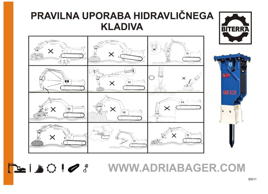Pozivamo vas da vidite kako se hidraulički čekić ispravno koristi na slikama ispod.