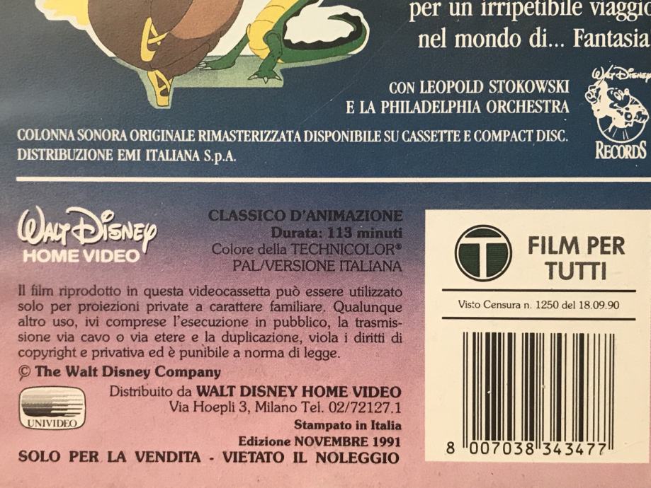 3.Disney klasik iz1940.naVHS-u: Fantazija | na talijan.jez. no titlovi