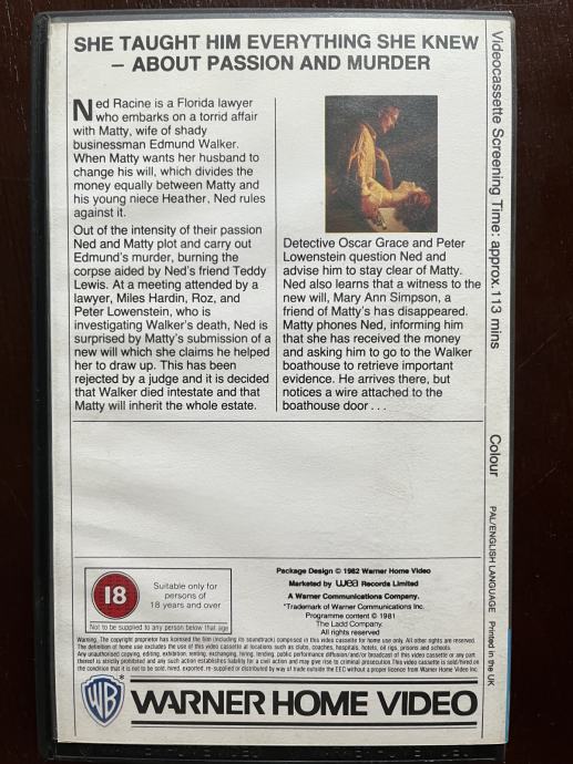 Prodajem sjajan neonoir film BODY HEAT sjajnog režisera Lawrence Casdana na VHS kazeti u mint stanju.