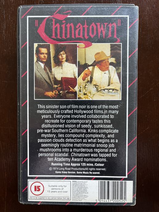 Prodajem kultni film CHINATOWN na VHS traci u mint stanju. Ovo je jedan od najvažnijih filmova u povijesti filma.