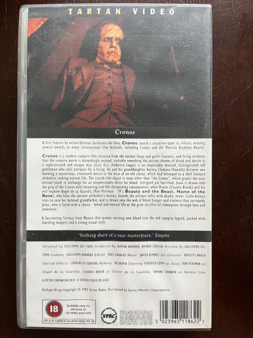 Prodajem vampirsku strašilicu CRONOS, prvi film Guillerma del Tora, na VHS kazeti u mint stanju.