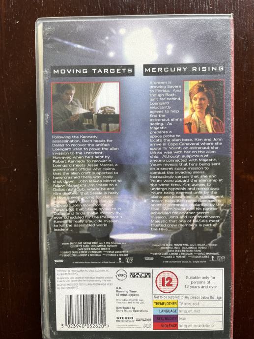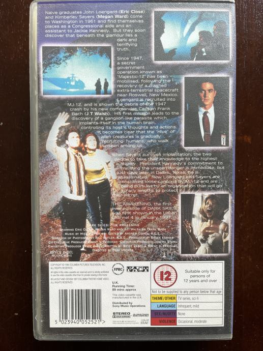 Prodajem komplet od dvije VHS kazete kratkotrajnoga, ali vrlo kvalitetnog znanstvenofantastičnog serijala DARK SKIES (pilot THE AWAKENING + dvije epizode koje čine cjelinu) u savršenom stanju.