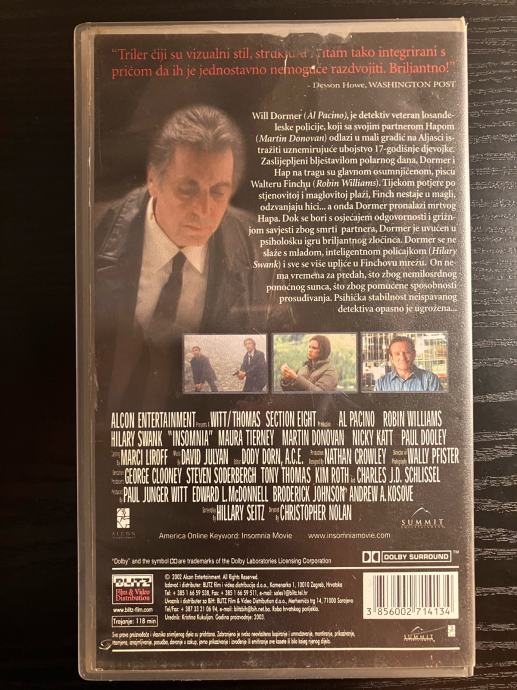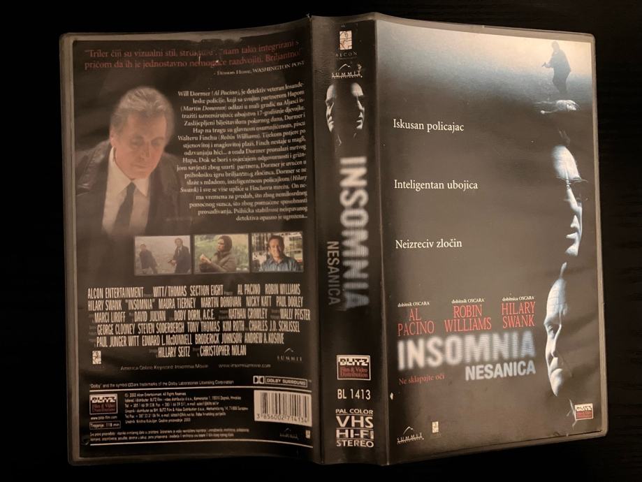 Insomnia - VHS kaseta original. 5 fotografija u oglasu. Cijena je 12 EUR, a Troškovi slanja su dodatna 3 EUR Tiskom ili 5 EUR Poštom za unaprijed uplatu na račun ili 6 EUR za plaćanje pouzećem. Slanje s Box Now je 2 EUR. Pakiram tako da je sigurno u transportu. Odgovaram na pozive, poruke putem Njuškala, SMS, Viber…