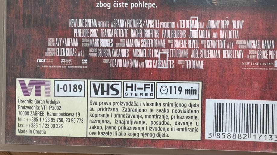 Johnny Depp + Penelope Cruz VHS Bijeli prah = Blow (2001.)