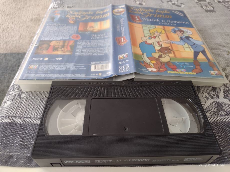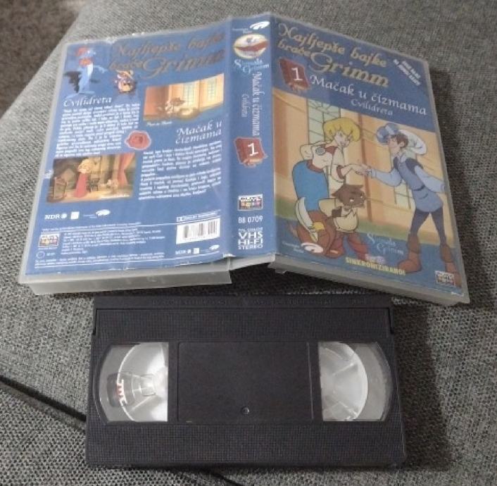 Prodajem rabljenu VHS kazetu s crtićem "Mačak u čizmama" iz kolekcije Najljepše bajke braće Grimm. Kazeta je u dobrom stanju i sadrži sinkroniziranu verziju na hrvatskom jeziku.