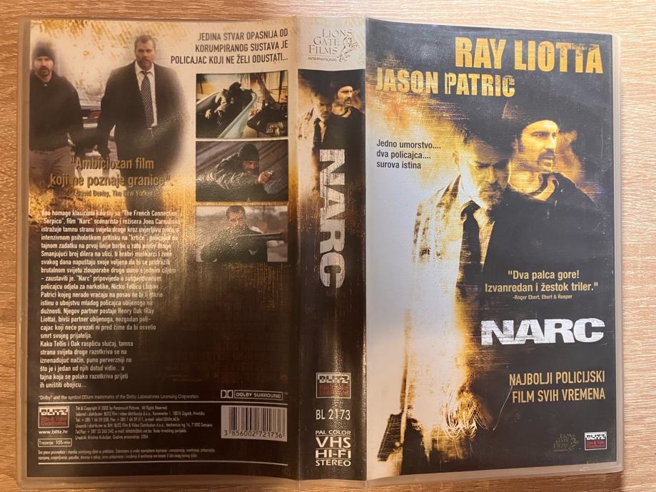 Narc - VHS kaseta original. 4 fotografija u oglasu. Cijena je 6 EUR, a Troškovi slanja su dodatna 3 EUR Tiskom ili 5 EUR Poštom za unaprijed uplatu na račun ili 6 EUR za plaćanje pouzećem. Slanje s Box Now je 2 EUR. Pakiram tako da je sigurno u transportu. Odgovaram na pozive, poruke putem Njuškala, SMS, Viber…