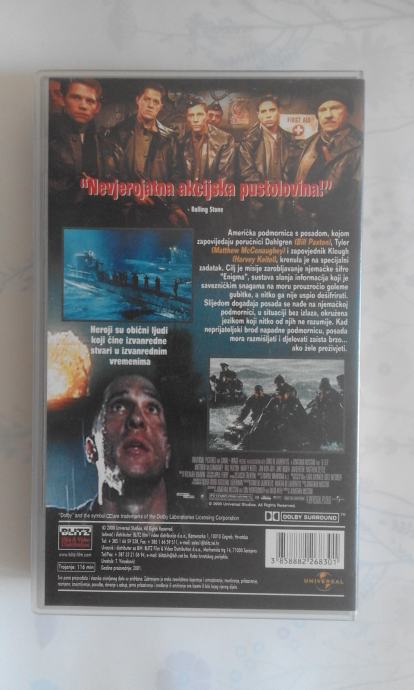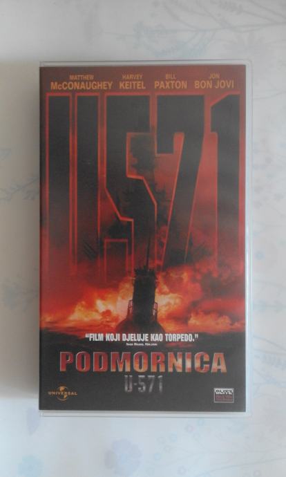 Odličan ratni film na VHS-u "Podmornica U-571". U glavnim su ulogama Bill Paxton i Harvey Keitel. Trajanje filma je 116 minuta. Izdavač DVD je BLITZ "Video film&distribution" d.o.o. Zagreb, 2001. godine. Plaćanje i dostava kupljenog predmeta obavlja se uplatom na broj računa pri HPB ili dostavom putem "Tiska".