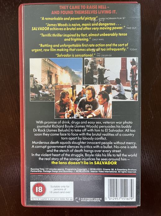 Prodajem politički triler SALVADOR režisera Olivera Stonea na VHS kazeti u vrhunskom stanju.