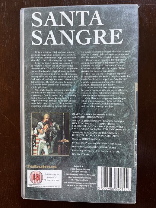 Prodajem kultni i bizarni film SANTA SANGRE, najekscentričnijeg umjetnika današnjice ALEJANDRA JODOROWSKYIJA, na VHS kazieti u savršenom stanju.