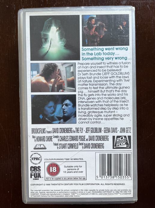 Prodajem body horror film legendarnog regissera Davida Cronenberga THE FLY na VHS vrpci u mint stanju.
