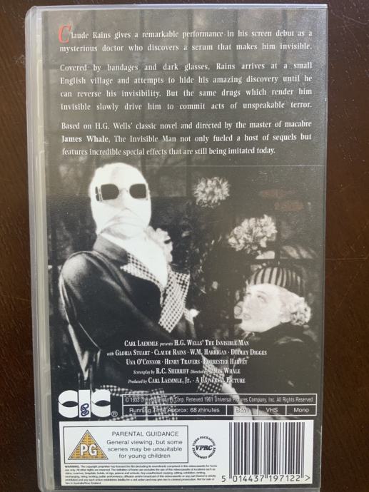 Prodajem legendarni film is Universalove “monster” serije filmova iz tridesetih godina THE INVISIBLE MAN na VHS-u.