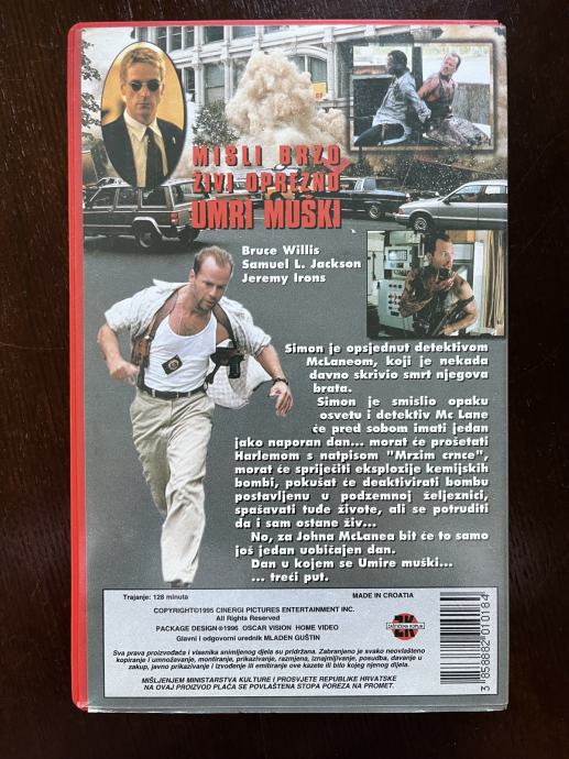 Prodajem akcioni film UMRI MUŠKI 3 - Die Hard: With a Vengeance na VHS vrpci u savršenom stanju. Film ima hrvatski titl.