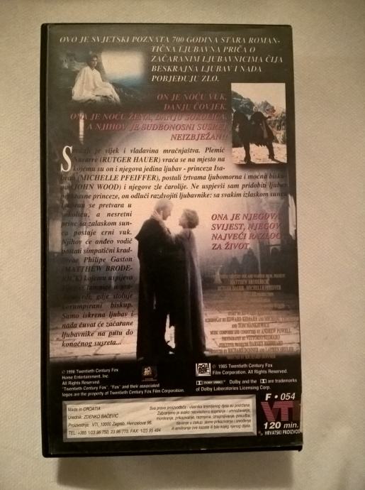 Žena Sokol * Ladyhawke * * 1985 * Michelle Pfeiffer, Rutger Hauer, Matthew Broderick....* IMDB ocjena 6,9/10 (cijena 6 eur)