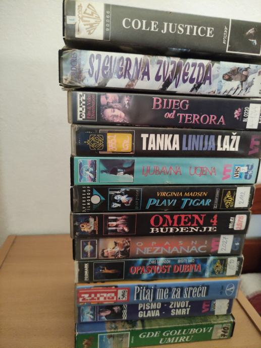 12 kazeta za 12 €, pojedinačno 1,5€ komad, šaljem minimalno 3 komada, moguća zamjena za druge filmove koje ganjam...