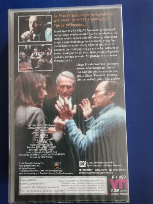 VHS kaseta THE VERDICT, Paul Newman - PRESUDA