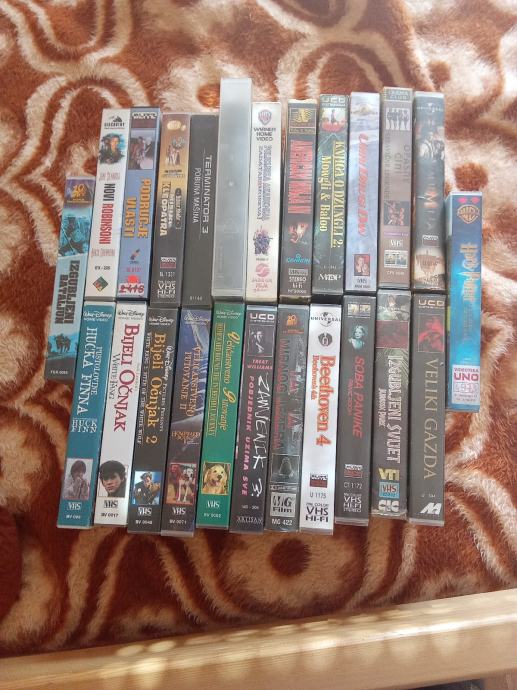 VHS orginal filmovi raznih žanrova ukupno 25 filmova sa Hrvatskim titlovima. U jako dobrom stanju odlični kao novi. Cijena za cijeli komplet od 25 filmova je 42 eura i fiksna je. Moguća prodaja po komadu minimalno tri filma. Onda je cijena 4 eura po komadu fiksno. Moguće slanje sa poštom. Kupac plaća poštarinu.