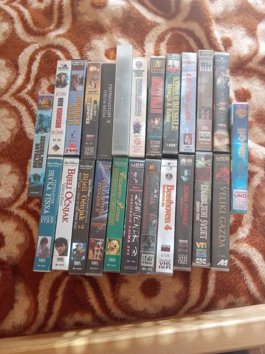 ASTERIX & OBELIX MISIJA KLEOPATRA 14. PODRUČJE VLASTI 15.GODZILLA i ANAKONDA na jednom VHS-u 16. AMERICAN NINJA 3 - prodan 17. POLICIJSKA AKADEMIJA ZADATAK MOSKVA 18. HARRY POTTER I KAMEN MUDRACA 19. IZGUBLJENI BATALJON 20. NOVI ROBINSONI 21.MUMIJA 22.OPASNE ČINI i STRAVIČNE LEGENDE na jednom VHS-u 23. UMRI DRUGI DAN 007 24. KNJIGA O DŽUNGLI 2 MOWGLI & BALOO