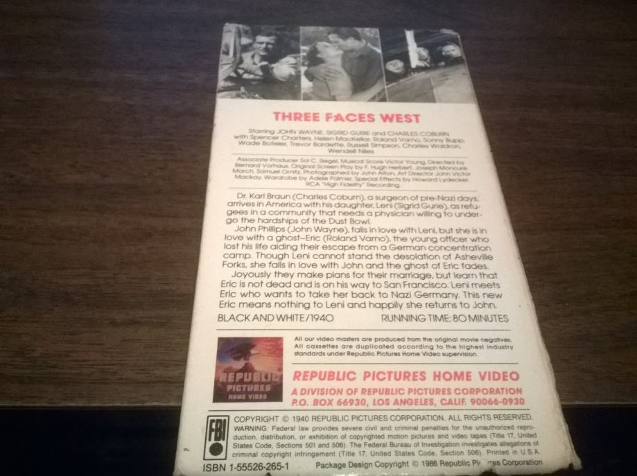 VHS THREE FACES WEST JOHN WAYNE