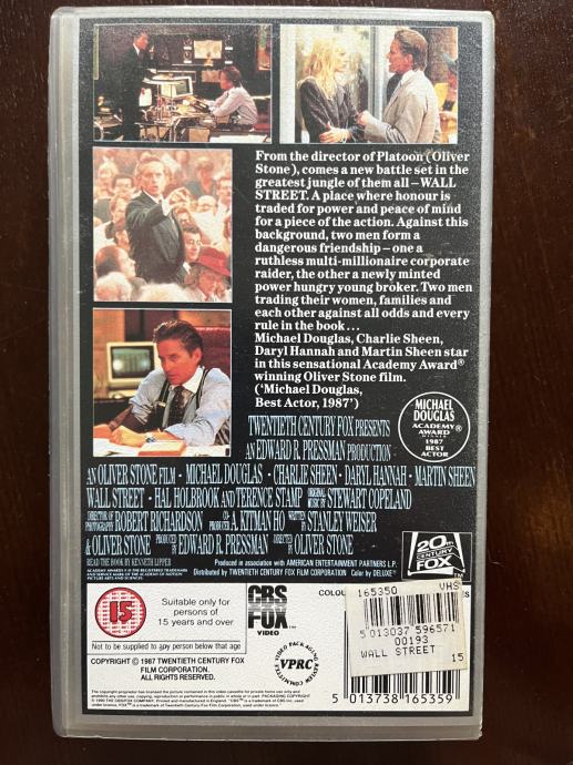 Prodajem sjajnu financijsku dramu WALL STREET režisera Olivera Stonea na VHS kazeti u izvrsnom stanju.
