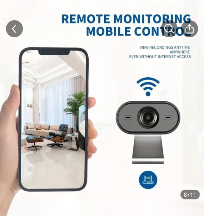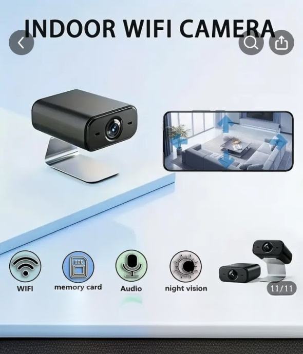 Pametna bezlična WiFi kamera za nadzor, daljinski pristup putem mobilne aplikacije, karakterizira noćni vid, audio, 2.4.G WiFi, detekcija pokreta. Podržava memorijsku karticu/ pohrana u oblaku, reprodukcija videa, prikladna za nadzor kuće ili ureda.