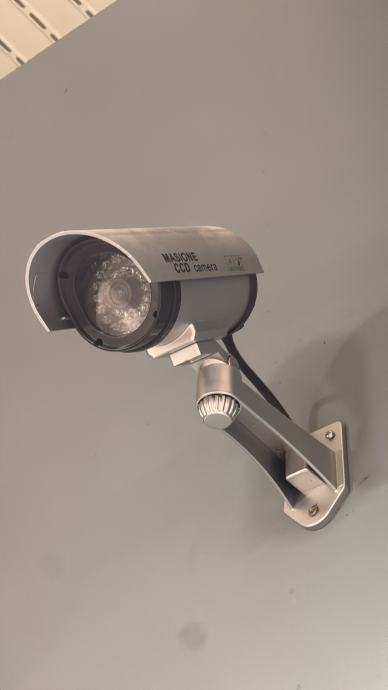 Prodajem lažne kamere za videonadzor. Radi se o atrapi sigurnosnih kamera koje izgledaju kao prave, a služe kao vizualna zaštita i odvraćanje. Kamere su srebrno-sive boje, s nosačem za montažu na zid. Imaju treptajuću crvenu ledicu, za realniji efekt. Na baterije.