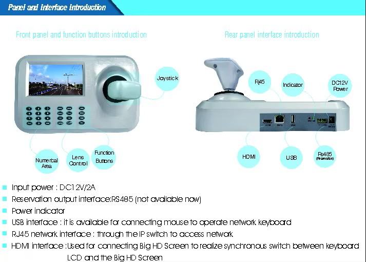 5inch LCD Plastic Monitor IP PTZ Keyboard Controller High Speed Dome Camera 3D Joystick HD Display Network