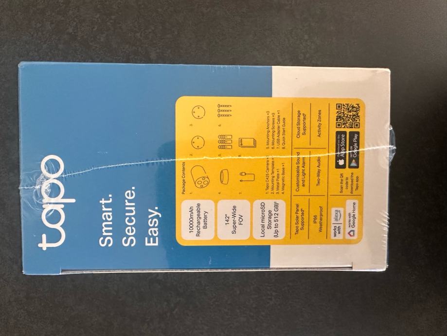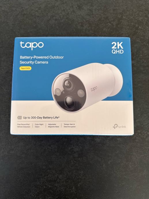 Tapo C425 kamere za vanjski video nadzor, jednostavna montaža na magnetnu bazu, širokokutna, WiFi, baterija od 10000 mAh koja napunjena traje do 300 dana, mogucnost spremanja video zapisa na memorijsku karticu ili na hub, mnogobrojne fukcije kamere - alarm, komunikacija...