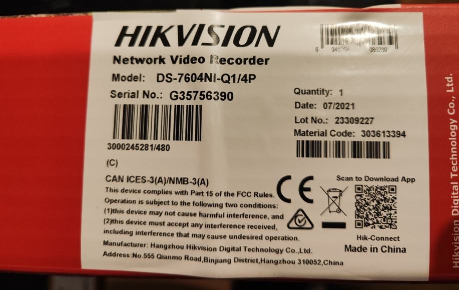 Videonadzor HiKVISION sa 4 kamere H.265+ i pripadajučim snimačem.