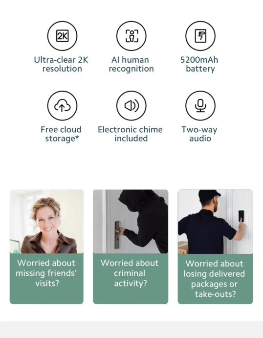 Notifikacije: podržane (push notifikacije pri zvonu / detekciji)