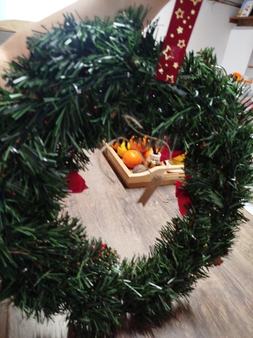 Prodajem adventski vijenac za vrata,ručni rad na metalnoj konstrukciji, promjera 40 cm