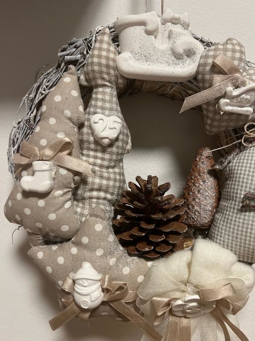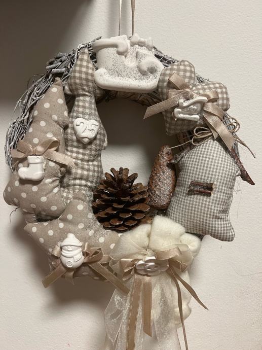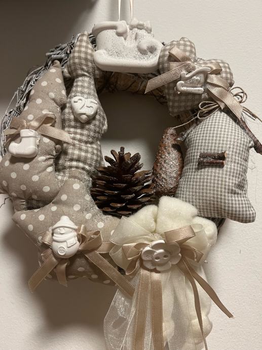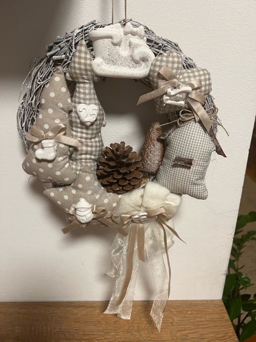 Prodajem božićni vjenčić za vrata ili zid. Stanje doslovno kao novo. Bez ikakvih oštećenja. Unikatni vjenčić, ručni rad, kupljen na božićnom sajmu u Zagrebu. Možete ga imati godinama.