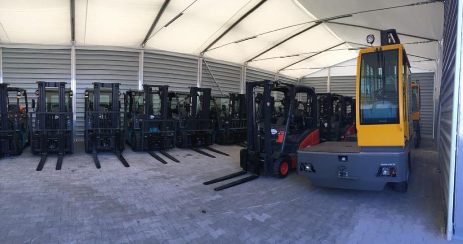 - velika flota viličara za najam, od malih električnih, bočnih, teleskopskih, do čeonih preko 12t nosivosti