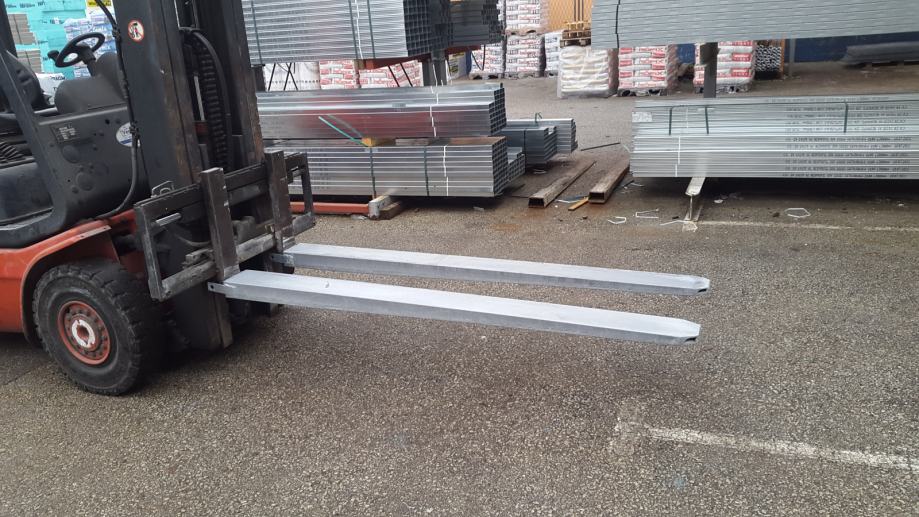 Duge vilice za viličar, dužine 200 cm, nove, izrađene iz čeličnih profila debljine stijenke 8 mm, trajno zaštičene vručim cinčanjem.