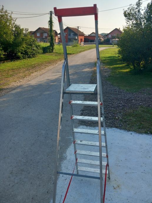 Prodajem dvoje ljestve sa po 7 gazišta i plasticnom posudom za sitni pribor. Sa crvenom trakom su 65e a druge 75e