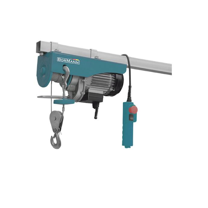 Električna dizalica Bormann BPA6000 Lite, snage 1050 W, pruža snažnu podršku kod podizanja i transporta teškog tereta u hobi radionici, garaži ili prilikom kućnih građevinskih radova. S pomoćnom remenicom može podići teret težine do 600 kg na visinu od 9 m, dok bez pomoćne remenice može podići teret od 300 kg do visine od 18 m. Ova dizalica pruža pouzdano rješenje za različite kućanske potrebe, uključujući dizanje tereta poput drva za ogrjev, paleta, selidbe ili kupovine u supermarketima, ali isto tako i za profesionalne svrhe u obrtima, radionicama ili skladištima s podrumom. Opremljena je automatskom kočnicom i sklopkom za trenutno zaustavljanje, što osigurava sigurnost pri radu.