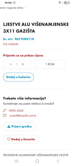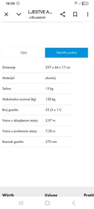 Prodajem nove aluminijske ljestve 3x11 Wurth. Razvučene 730 cm
