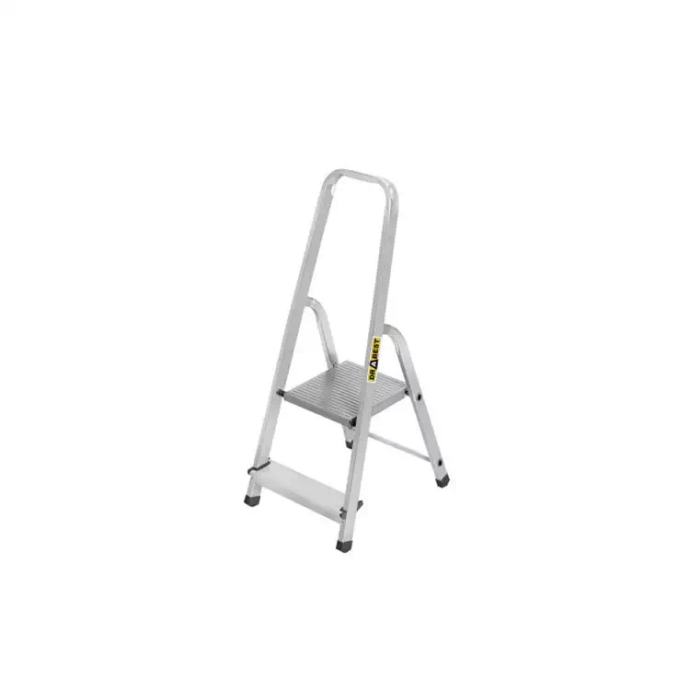 Aluminijske ljestve nosivosti 150 kg, namijenjene su za korištenje u kućanstvima. Njihova mala težina čini ih idealnima za svakodnevno korištenje. Platforma i gazište sigurni su protiv klizanja, a non-slip opremljene stope štite od klizanja i prevrtanja. TEHNIČKE KARAKTERISTIKE: • BROJ GAZIŠTA: 2