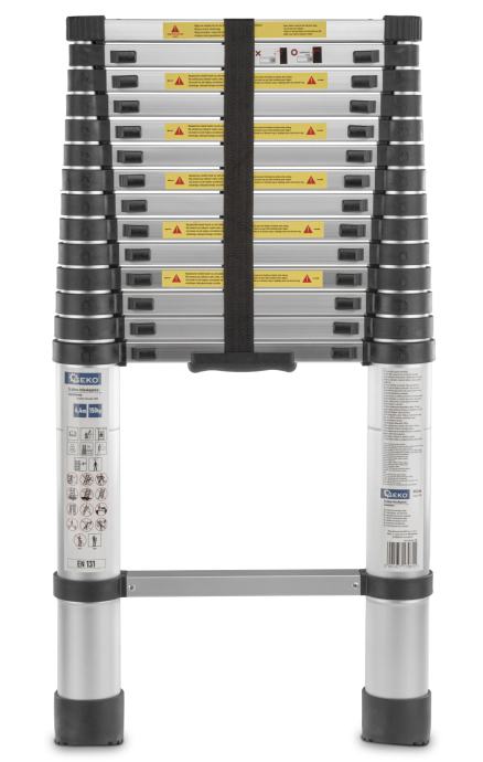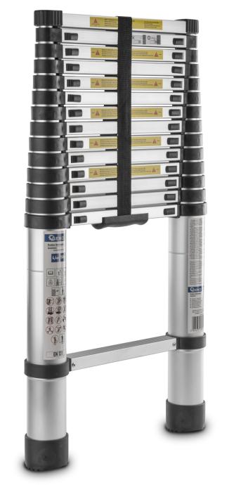 Teleskopske ljestve se sastoje od segmenata koji se mogu izvlačiti ili uvlačiti, što omogućuje podešavanje duljine ljestava. To čini ljestve svestranim i prilagodljivim različitim zadacima, kao što je rad na različitim visinama ili na teško dostupnim mjestima. Ljestve su opremljene mehanizmima za zaključavanje koji drže dijelove ljestava na mjestu, osiguravajući stabilnost i sigurnost tijekom korištenja, sprječavajući slučajno iskliznuće dijelova.