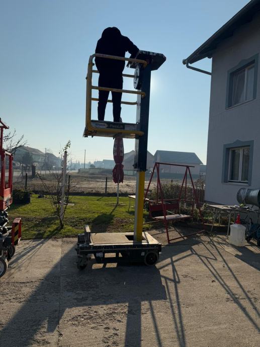 Prodajem i iznajmljujem škarastu platformu: SKY JACK,model sj3,godina proizvodnje 2017,nosivost dvije osobe 227kg,ukupna težina stroja 1312kg,radna visina 6m,akumulator 24v.