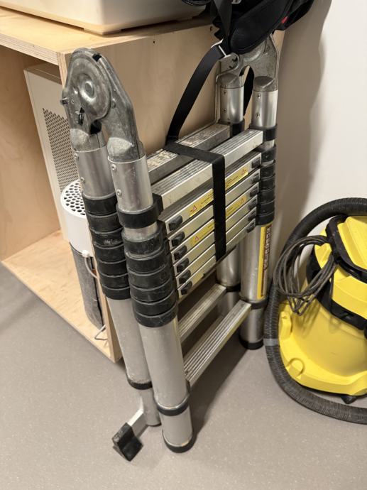 Teleskopske aluminijske ljestve od 1 do 5m, kupljene u Bauhausu prije godinu dana. Potpuno ispravne. Više nego duplo jeftinije od cijene novih (219 eura).