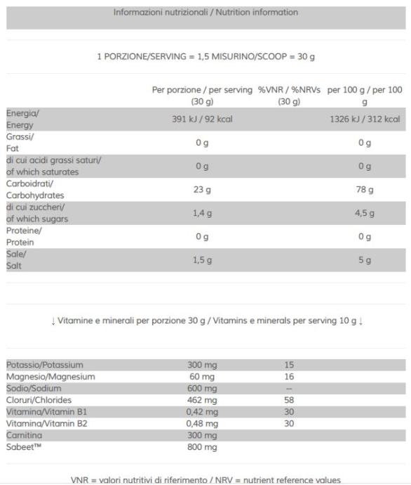 HYDRA MAX ENERGY dodatno je pojačan s L-karnitinom, patentiranim ekstraktom cikle Sabeet® te ključnim vitaminima B1 i B2 koji doprinose normalnom metabolizmu energije u tijelu te smanjuju umor i iscrpljenost.
