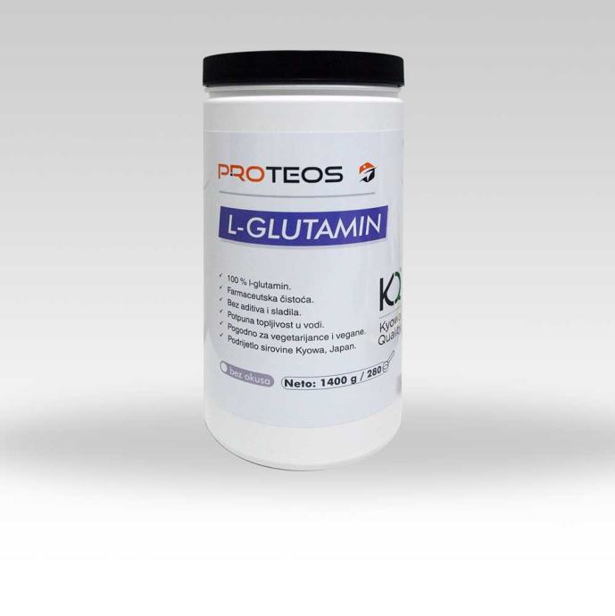 Proteos Glutamin je čista aminokiselina l-glutamin, bez boje, okusa i mirisa, bez ikakvih aditiva i sladila, odlično topljiva u vodi.