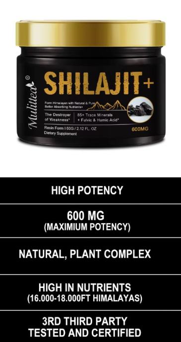 Shilajit sadržava 100% čistu smolu shilajit. Samo priroda može stvoriti nešto tako kompleksno i učinkovito. Shilajit sadržava organske minerale, fluvinsku i huminsku kiselinu, ugljik 60, biljne antioksidanse i mnoge druge organske kiseline i minerale. Samo ćete u Shilajitu pronaći savršenu kombinaciju prirodnih sastojaka koju će vaše tijelo odmah prihvatiti i apsorbirati i zbog toga je Shilajit vjerojatno najbolji dodatak prehrani na svijetu.