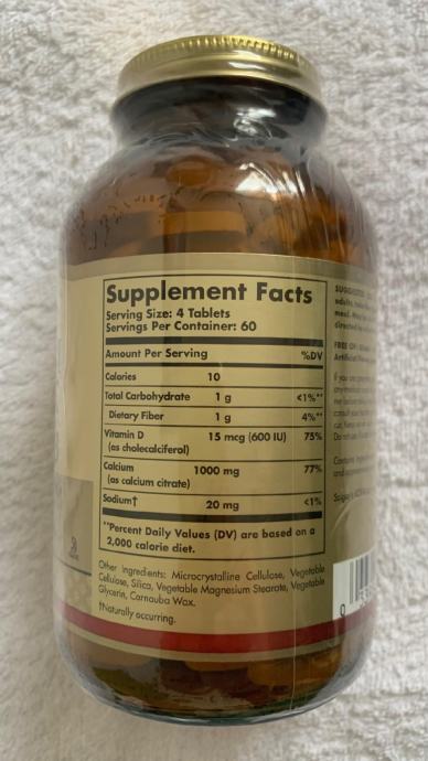 KALCIJ CITRAT + VITAMIN D3, Solgar