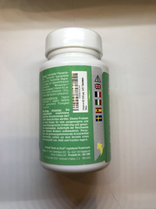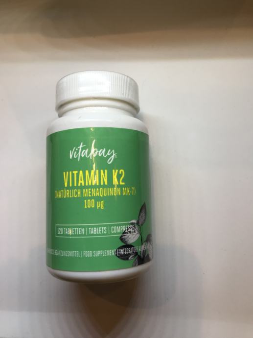 Vitabay vitamin K2 100 mcg sa K2 MK-7 (Menaquinon-7) 120 veganskih tableta visoke doze napravljenih od prirodnih sastojaka. Laboratorijski ispitano i izrađeno od visokokvalitetnih sirovina