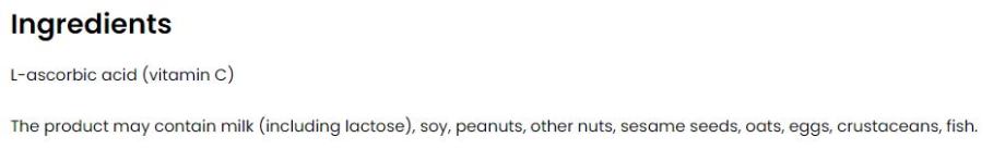 VITAMIN C ne sadrži nikakve GMO sastojke niti sastojke koji su zabranjeni od strane Svjetske Anti-Doping Agencije (WADA) tako da je siguran za uzimanje svim natjecateljskim sportašima.